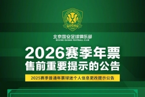 上一篇: 国安发布年票售前提示公告:春节假期后启动年票发售工作
