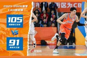 2025-2026赛季CBA常规赛第17轮,福建晋江文旅男篮回归主场,首战南京天之蓝男篮。凭借首节建立的巨大优势,核心球员的稳定输出与全队坚韧的防守,主队福建晋江文旅男篮最终以105-91大胜对手。四节比分分别是:31-12,18-28,31-27,25-24(福建晋江文旅男篮在前)。