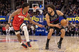 体育资讯1月25日讯 NBA常规赛,火箭111-104战胜活塞。