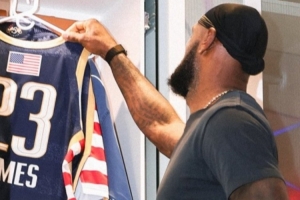 湖人官方晒出詹姆斯与东契奇全明星战袍,可以看到詹姆斯球衣背后印有美国国旗,而东契奇球衣背后是斯洛文尼亚国旗。
