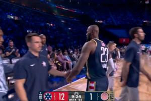 GIF-马克西突破上篮命中后直接抢断詹姆斯分球干拔三分~!!连得5分~!,开局新星队12-1星条队!